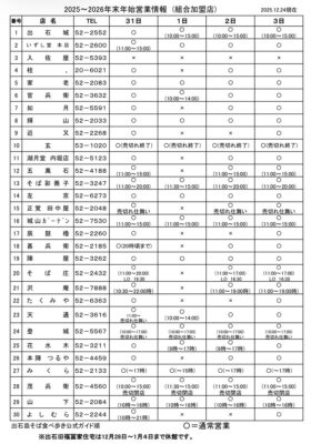 出石皿そば店の営業情報です 冬休み、年末年始のご旅行、帰省の際、ご参考にしてください。 皿そば組合加盟店は一覧を 他店舗は下記ご参照くださいませ。 ①一鶴 12月31日〜1月3日 通常営業 TEL 0796-52-6655 ②永楽蕎麦 12月31日11:00-13:00 売り切れ次第 1月1日〜1月3日 休業 TEL: 0796-52-2540 ③南枝小人店 12月31日〜1月3日 11:00-15:00 売り切れ次第 ※ご予約、詳細等は各店舗にお問い合わせをお願いします🤲 ⭐︎⭐︎⭐︎年始メディア情報⭐︎⭐︎⭐︎ NHK総合 日本最強の城 新春特大号 「豊臣兄弟!」ゆかりの城🏯⛰️✨ 2026年1月1日(木)19時30分〜20時48分 #日本最強の城スペシャル🏯 有子山城が出ます!!是非ご覧下さい!
